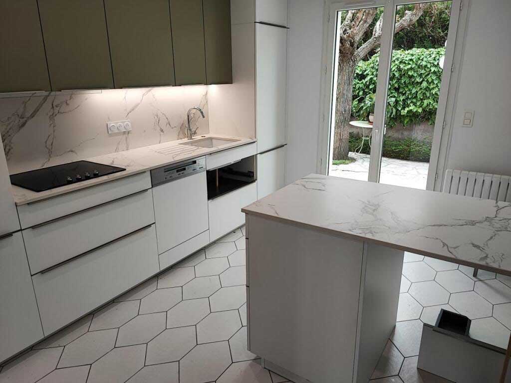 Le plan de travail est l’une des réalisations les plus techniques. Il doit résister à la chaleur, aux chocs, aux tâches et à une utilisation quotidienne parfois intensive.